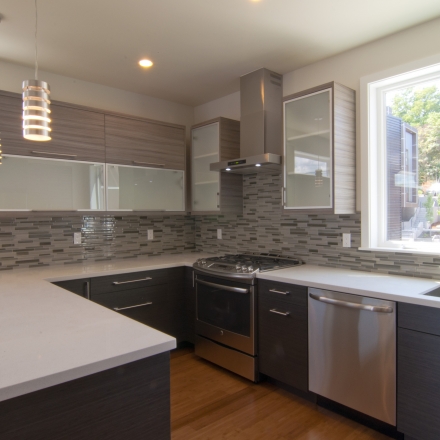 Valentine Communities homes seamlessly blend modern technology with nature, featuring eco-friendly materials and clean organic designs. Each home is its own secluded oasis, with a spacious rooftop deck perfect for entertaining, and expansive windows throughout to allow for plenty of natural light. The ultra-modern kitchens feature gorgeous tile backsplashes, Quartz slab countertops, ample Canyon Creek cabinets, and high-end stainless steel appliances. Bathrooms feature Grohe faucets, deep soaking tubs, and hybrid heated Italian tile floors. All homes at Valentine Communities also boast beautiful bamboo flooring and a sleek gas fireplace ideal for cold winter nights. Perfect timing to enjoy the hot summer with the ductless mini-split AC/Heating system in each room.