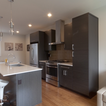 Valentine Communities homes seamlessly blend modern technology with nature, featuring eco-friendly materials and clean organic designs. Each home is its own secluded oasis, with a spacious rooftop deck perfect for entertaining, and expansive windows throughout to allow for plenty of natural light. The ultra-modern kitchens feature gorgeous tile backsplashes, Quartz slab countertops, ample Canyon Creek cabinets, and high-end stainless steel appliances. Bathrooms feature Grohe faucets, deep soaking tubs, and hybrid heated Italian tile floors. All homes at Valentine Communities also boast beautiful bamboo flooring and a sleek gas fireplace ideal for cold winter nights. Perfect timing to enjoy the hot summer with the ductless mini-split AC/Heating system in each room.
